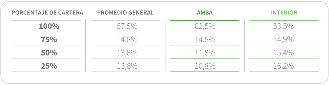 El 71,1% de los productores trabaja a través de organizadores. La composición del trabajo con organizadores por porcentaje de cartera se detalla a continuación: