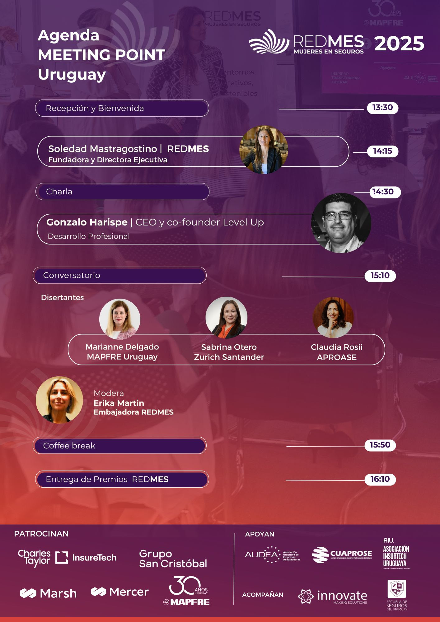 RedMES – Mujeres en Seguros dio a conocer la agenda completa del Meeting Point RedMES Uruguay 2025 que tendrá lugar el martes 28 de octubre.