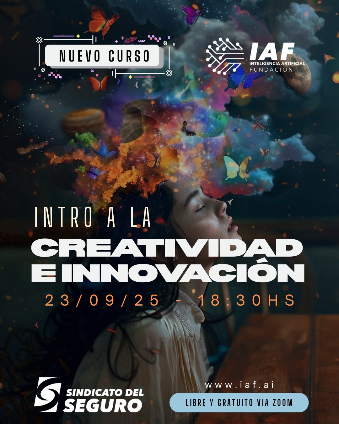 Desde la Fundación de Inteligencia Artificial (IAF) invitan a participar del curso gratuito “Introducción a la Creatividad y la Innovación” que dictaran el martes 23 de septiembre a las 18:30 horas en modalidad online y sincrónica vía Zoom (se recibe el link 48 horas antes por e-mail).