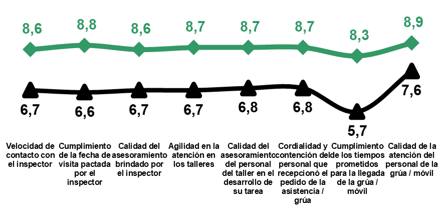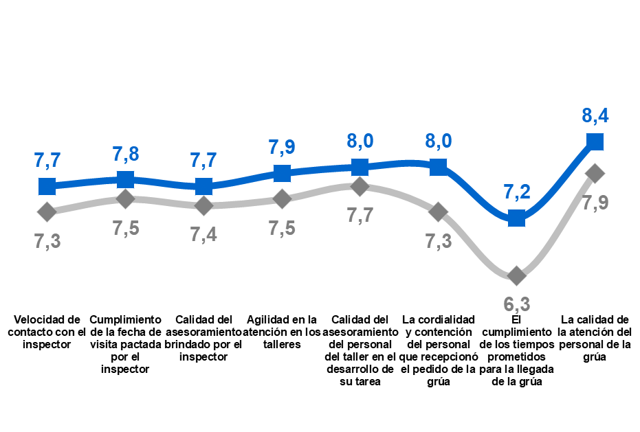 El relevamiento muestra una importante mejora en todos los aspectos de la atención y gestión de los siniestros de automóviles, destacándose por primera vez en varios años el incremento de la satisfacción en los tiempos de llegada de las grúas.