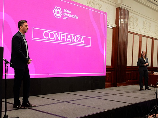 Luego expusieron Pablo Britos y Verónica Fontaine, subgerente general de Evolución Seguros y gerente de Prestaciones de Zona de Evolución ART, acerca de “Una nueva zona de oportunidades”.