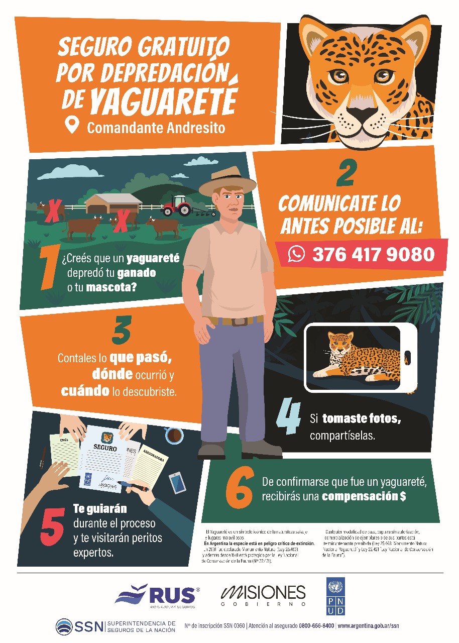 El seguro, lanzado por el PNUD y el Gobierno de Misiones, tendrá una primera etapa de implementación en el municipio de Comandante Andresito (provincia de Misiones) y constituye una solución pionera a nivel global. El producto es adquirido por el gobierno provincial, gratuito para los ciudadanos, sin franquicia y peritado por una ONG experta en conservación de biodiversidad.