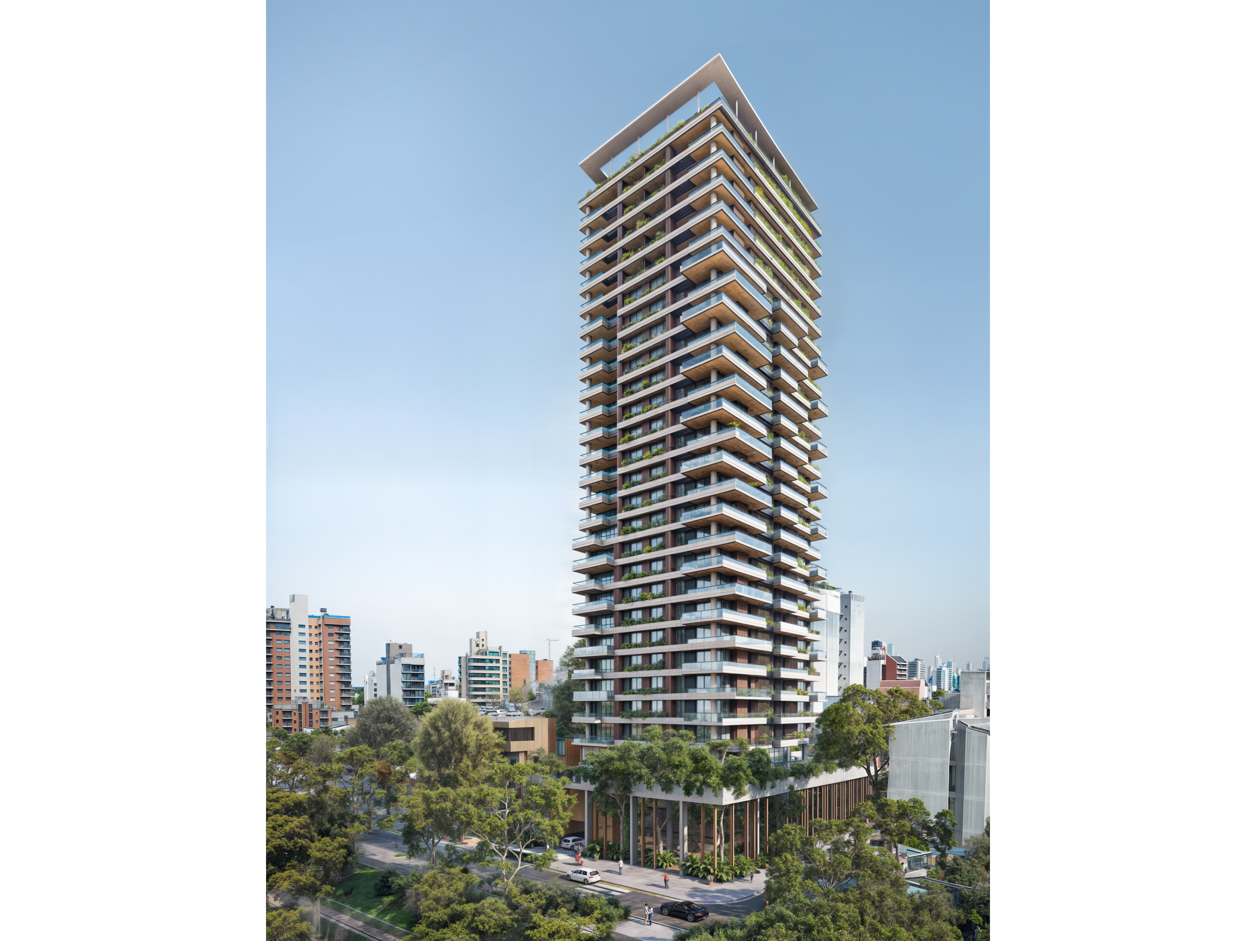 Con un basamento de cuatro niveles y una torre de 90 metros de altura, Veta del Paraná ofrecerá 28 pisos de amplios espacios residenciales concebidos para perdurar en el tiempo. Todas las unidades contarán con balcón-terraza y espacio para parrilla eléctrica, reforzando el concepto de confort y vida al aire libre.
