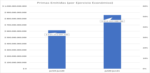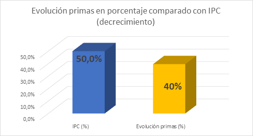 Al analizar los números de la facturación, el crecimiento de las primas medidas a valores históricos estuvo muy por debajo del desarrollo del IPC, que alcanzó el 50,2%. En tanto, las primas acumuladas durante el mismo período fueron de un 40,3% lo que representa 9,2 puntos básicos y un 20% por debajo de la inflación.