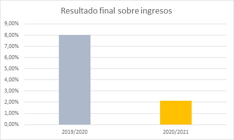 En consecuencia, el mercado cerró un año muy negativo en términos de resultados. En comparación con el período anterior, que también sufrió los efectos de la pandemia, el resultado medido sobre primas devengadas (ingresos) se divide prácticamente por cuatro al pasar de 8% a 2,1%.