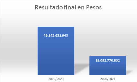 En relación a pesos, después de un año con una inflación de 50,2%, el mercado redujo sus ingresos en la misma moneda de 49 mil a 19 mil millones de pesos, un 61% menos que el año anterior.