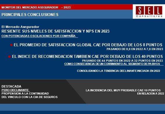 El 29 de noviembre se presentaron en el Auditorio de La Caja los resultados del sondeo que anualmente realiza SEL Consultores sobre la satisfacción de clientes de patrimoniales, informó la Asociación Argentina de Compañías de Seguros. La encuesta mostró la opinión de los beneficiarios sobre el servicio recibido tras tramitar y cobrar un accidente de automotores, combinado familiar y/o integral de comercio.