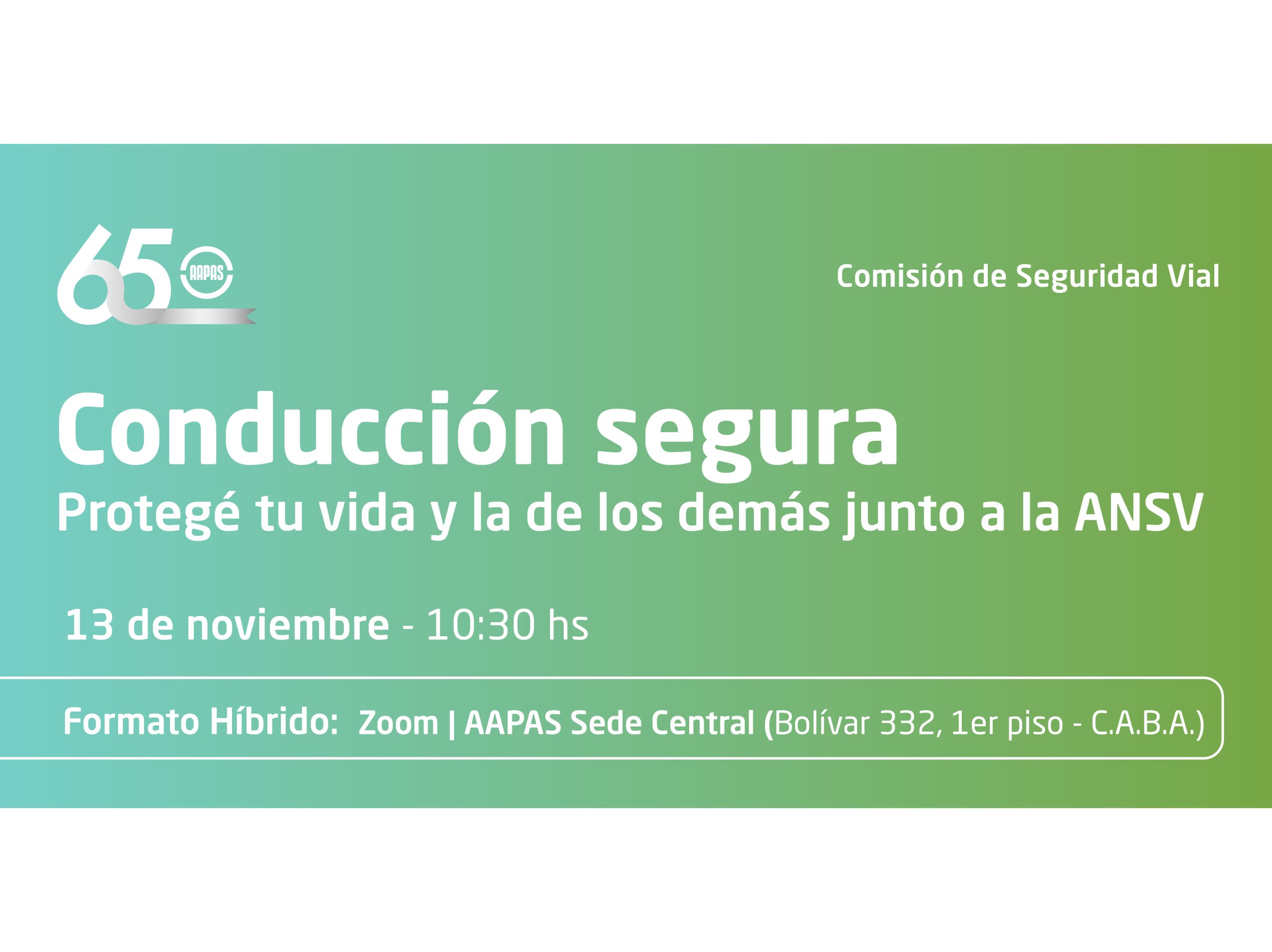 La Asociación Argentina de Productores Asesores de Seguros (AAPAS) y la Agencia Nacional de Seguridad Vial (ANSV) invitan a la capacitación “Conducción segura: protegé tu vida y la de los demás”. En este encuentro, la capacitadora Marisa Núñez abordará temas esenciales sobre seguridad vial, el rol del conductor y los cuidados que se deben tener en el espacio público.