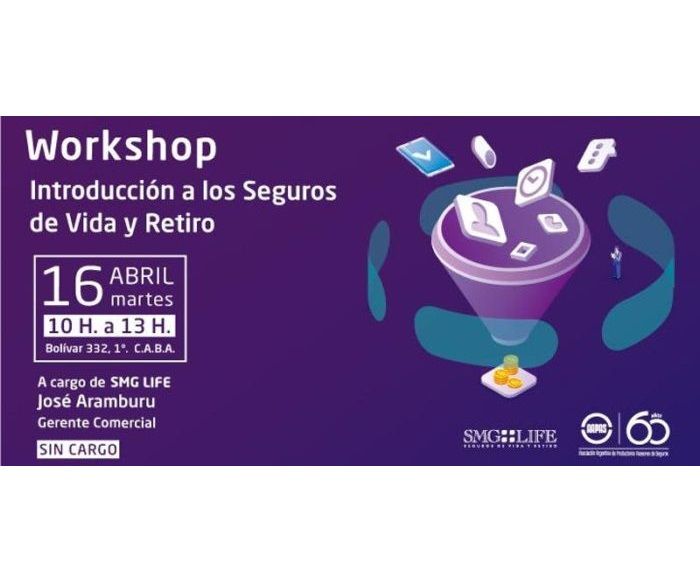 El próximo martes 16 de abril de 10 a 13 horas, la Asociación Argentina de Productores Asesores de Seguros organiza el workshop “Introducción al seguro de vida y retiro”, que estará a cargo de José Aramburu, gerente comercial de SMG LIFE. El encuentro se llevará cabo en la sede central de AAPAS, ubicado en Bolívar 332 1º piso, Ciudad de Buenos Aires.