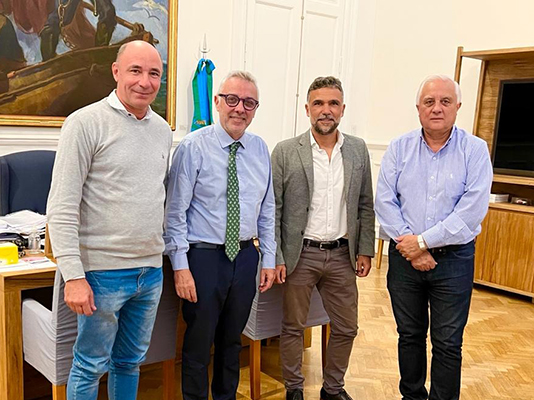 Sebastián Del Brutto y Marcelo Garasini, presidente y coordinador de la Comisión Técnica de la Asociación Argentina de Productores Asesores de Seguros (AAPAS), respectivamente, mantuvieron un encuentro con el intendente del municipio bonaerense de Tigre, Julio César Zamora, y el secretario de Gobierno de la localidad, Mario Zamora.