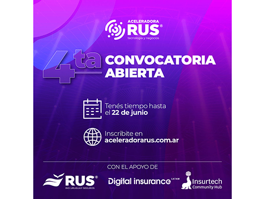 La Aceleradora RUS es una propuesta impulsada por Río Uruguay Seguros (RUS), Digital Insurance LatAm e Insurtech Community Hub con el fin de contribuir al desarrollo de startups e insurtechs de Latinoamérica y Europa que ofrezcan soluciones innovadoras para el mercado asegurador. Las empresas interesadas en participar en la cuarta convocatoria podrán presentar sus propuestas hasta el 22 de junio.