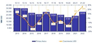 Entre enero y diciembre de 2022, las primas totales de los seguros de autos en América Latina alcanzaron un monto de 29.699 millones de dólares, según informó LatinoInsurance Online. Fue una cifra que comparada con 2021 significó un aumento de 26% en volumen y 17% por arriba de la prepandemia (2019).