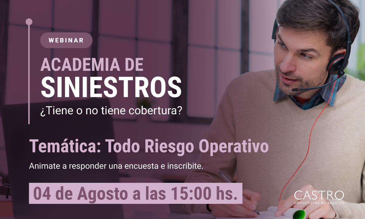 El miércoles 4 de agosto, Castro Consultores realizó exitosamente una nueva presentación de Academia de Siniestros. Se trata de un ciclo de webinars en los que se comparten respuestas a las dudas acerca de si algunos hechos que derivan en siniestros están o no cubiertos.