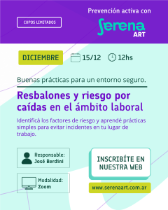 “En Serena ART estar tranquilo y seguro es fundamental, por eso considera importante generar un ciclo de capacitaciones para fomentar la cultura preventiva”, señalaron desde la compañía. Los cursos serán dictados por profesionales a partir de diciembre de manera virtual y se entregarán certificados de asistencia.
