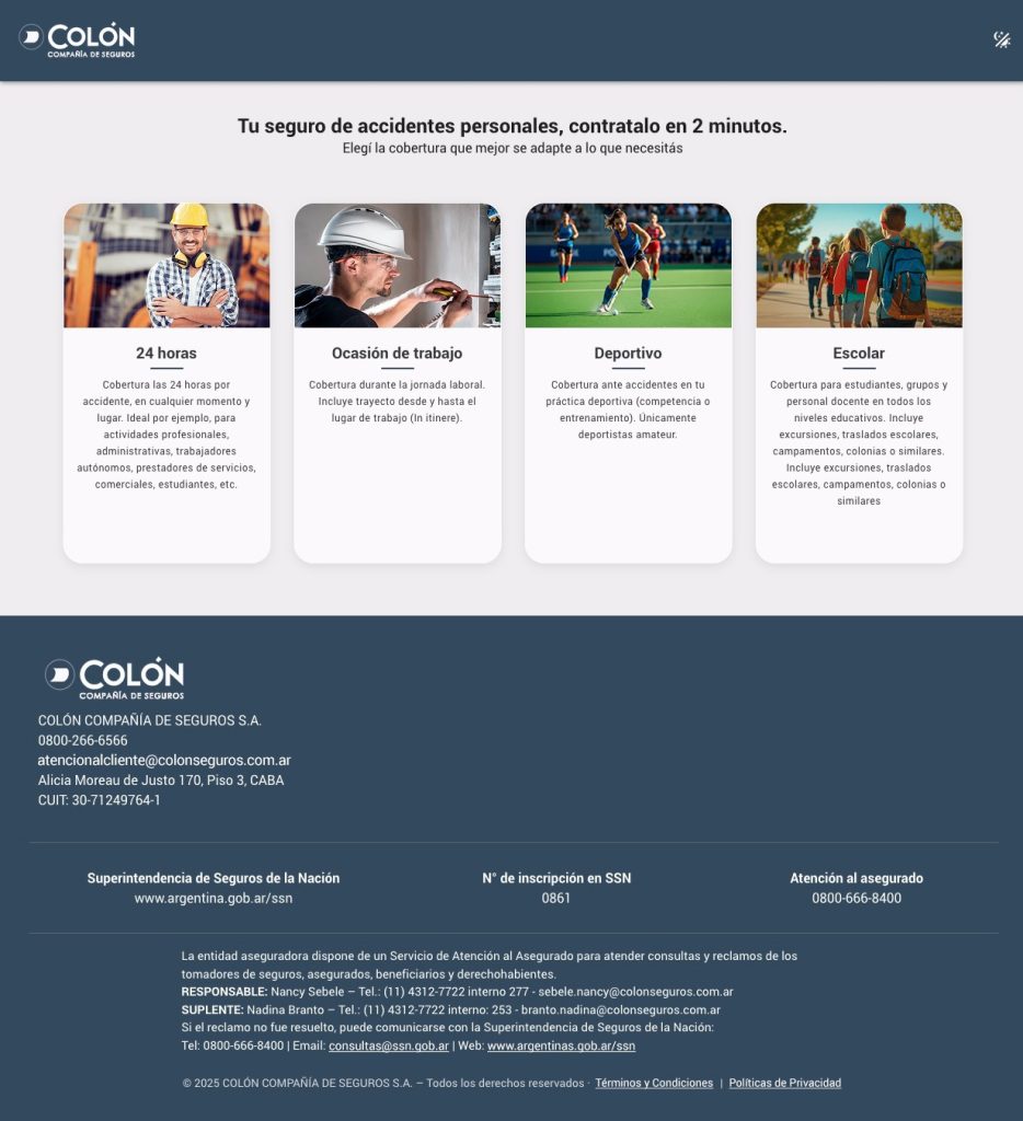 – Hoy, ColónX inicia con la cobertura de accidentes personales para un nicho desatendido de clientes. La propuesta es simple, de alta afinidad digital y de rápida contratación. En la Argentina, millones de trabajadores carecen de protección frente a accidentes personales y existe una creciente demanda de productos simples que se pueden comprar y pagar en forma digital. En el mediano plazo está previsto sumar nuevas coberturas que mantengan la simplicidad del proceso y no requieran gestiones técnicas presenciales. Esto garantiza un customer journey ágil y eficiente.
