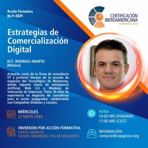 El 22 de mayo a las 12 horas de la Argentina, la Confederación Panamericana de Productores de Seguros (COPAPROSE) realizará la nueva acción formativa “Estrategias de comercialización digital”. Esta capacitación forma parte del Programa de Certificación Iberoamericana COPAPROSE 2024. Asimismo, cuenta con importantes beneficios para los productores asociados a alguna de las 22 entidades que integran la Federación de Asociaciones de Productores Asesores de Seguros de la Argentina (FAPASA).