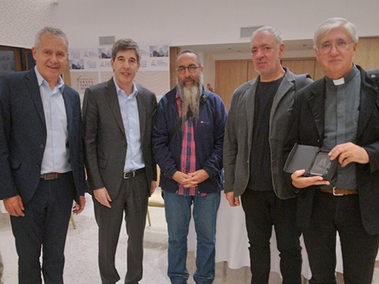 De izquierda a derecha: Javier Di Biase, gerente de Fundación Grupo Sancor Seguros; Alejandro Simón, CEO del Grupo Sancor Seguros; rabino Daniel Goldman; Sr. Omar Abboud; y presbítero Guillermo Marcó.