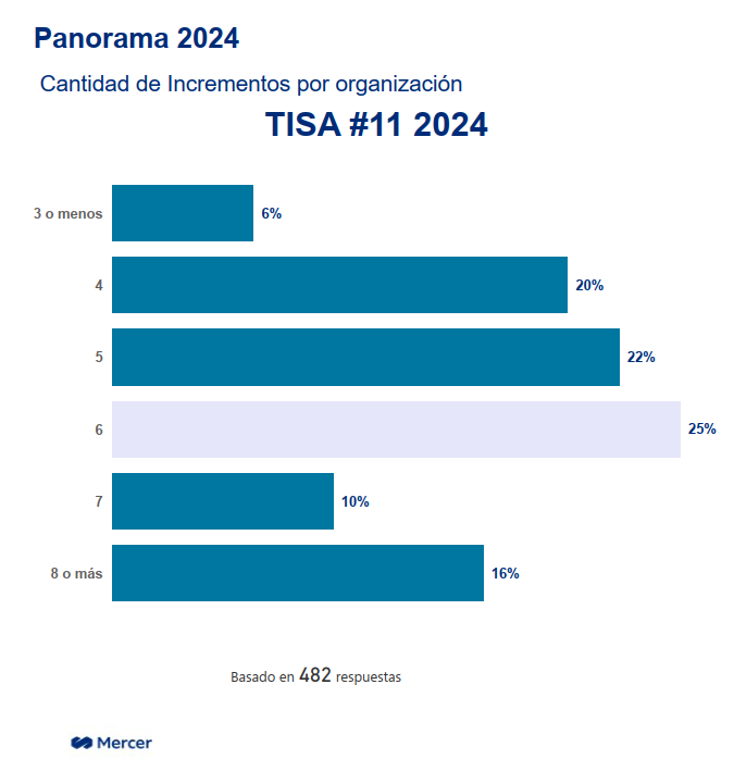 Según el último informe de Tendencias de Incrementos Salariales en Argentina (TISA) de Mercer, se observa que el presupuesto anual de incrementos salariales de 2024 para el mercado general presenta una leve disminución, ubicándose en un 139% (mediana), dos puntos por debajo del informe de octubre.