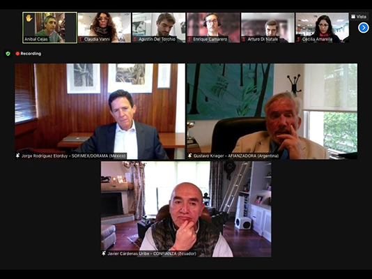 Gustavo Krieger (Argentina), Javier Cárdenas (Ecuador) y Jorge Rodríguez Elorduy (México) disertaron sobre la realidad regional del negocio, sus experiencias y el potencial de este producto en la economía que viene. Todos ellos tienen como denominador común haber ostentado la presidencia de la prestigiosa Asociación Panamericana de Fianzas (PASA) como así también la dirección de sus aseguradoras especialistas en caución.