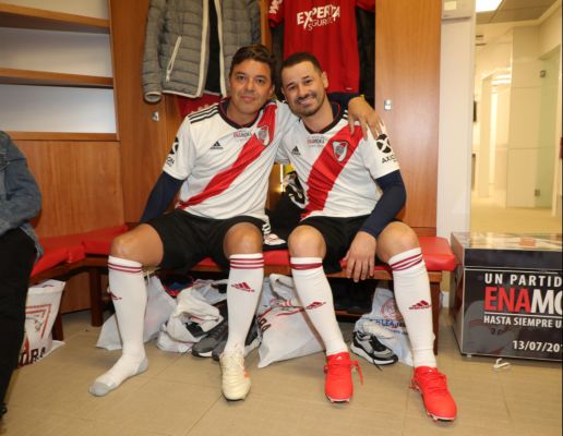 Con un Monumental repleto, los invitados fueron testigos de la presencia simultánea en cancha de varios ídolos riverplatenses y en donde Mora jugó un tiempo para cada equipo en el partido que terminó con triunfo 8-7 del plantel campeón de la Libertadores 2018 sobre los campeones de 2015.