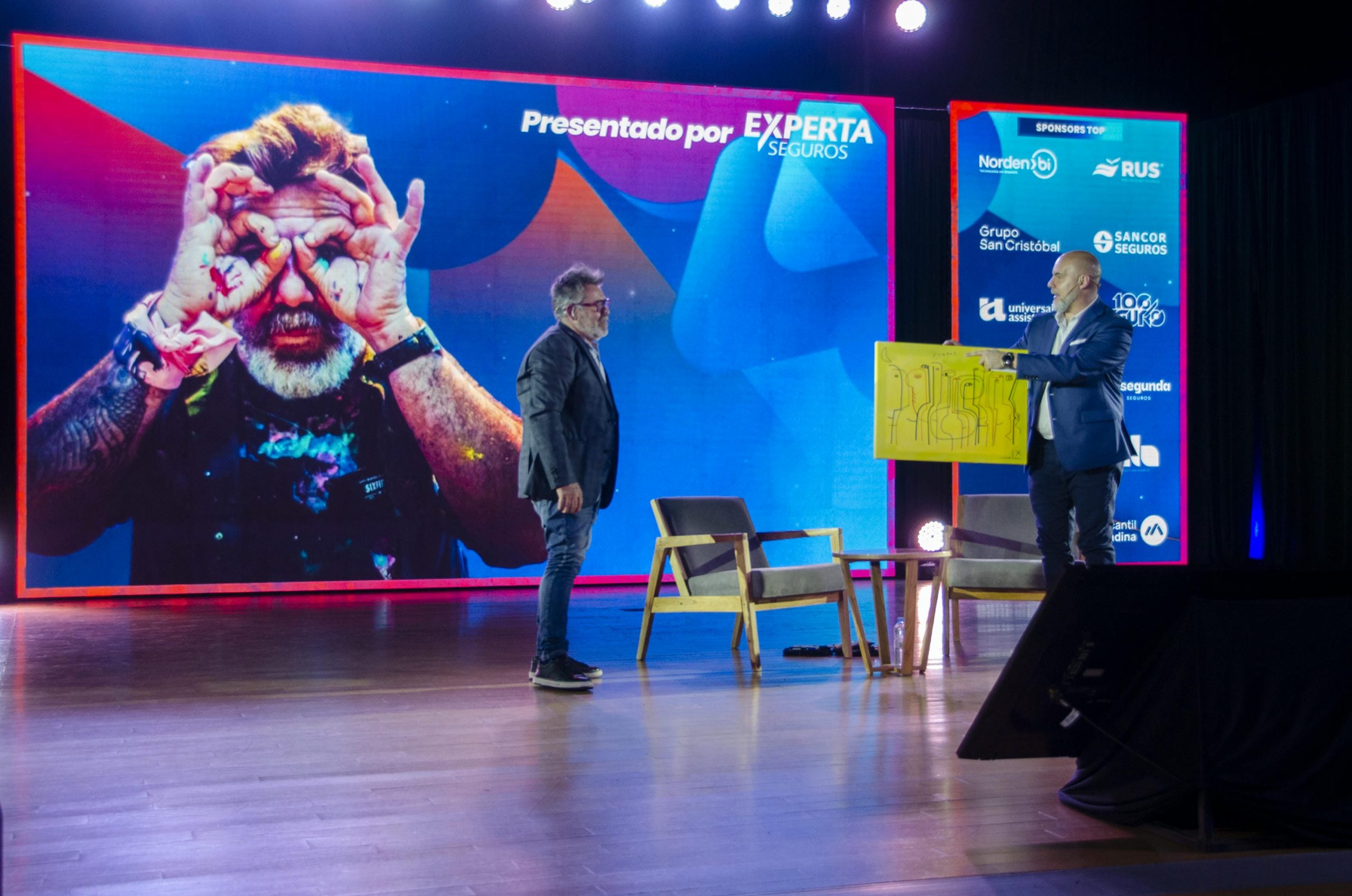 Patrocinado por Experta Seguros, el reconocido artista plástico Milo Lockett participó de una charla y sorprendió a los asistentes al realizar un cuadro original, pintado especialmente para la ocasión. Este gesto dejó una marca imborrable en el evento y demostró una vez más la pasión de Lockett por su arte.