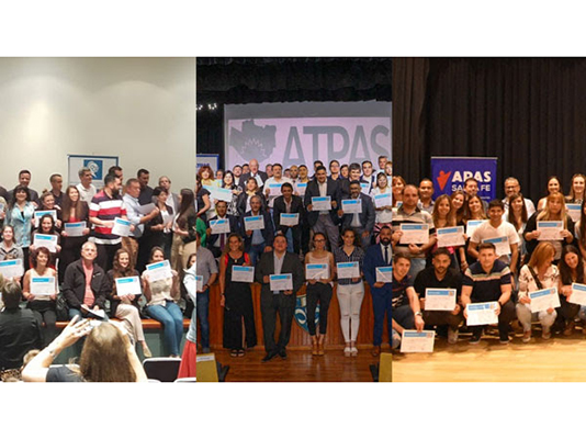 El viernes, en Tucumán, el consejero del Ente Cooperador, Daniel Rosemberg, fue el encargado de comandar la entrega de diplomas. Lo hizo junto con Belén Escobar, representando a la SSN; Martín Zavaleta, del Consejo Directivo de FAPASA y dirigente de ATPAS (Tucumán); Norma Sona, presidente de APAS Salta; María Rivero, de APAS Corrientes; y Elisa Tejeda, presidente de APAS Catamarca. También participaron docentes del Centro Federal de Capacitación (CFC) Filial Tucumán, entre otros miembros de la Comisión Directiva de ATPAS.