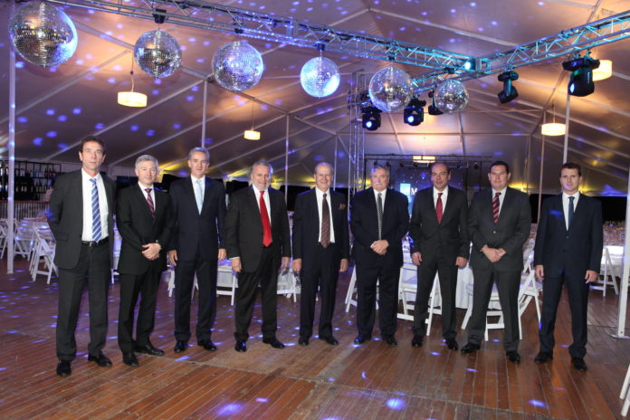 En la foto, de izquierda a derecha, Fernando Oleksuk (gerente de RRHH), Carlos Anamiodi (gerente de Sistemas), Patricio Iglesias (gerente técnico), Alberto Aguiló, Enrique Pescarmona, Pedro Mirante (gerente general), Andrés Quantín (gerente comercial), Pablo Seitler (gerente de Administración y Finanzas) y Esteban Rodriguez (jefe comercial Interior Región Cuyo-Córdoba-NOA).