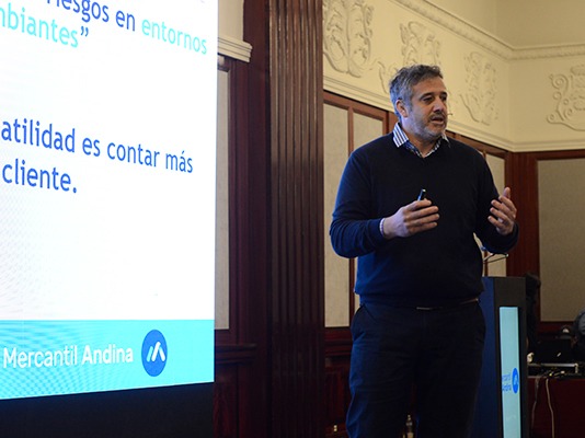 “Diversificar la cartera para mitigar riesgos en entornos económicos cambiantes” fue el nombre de la disertación de Agustín Carranza, gerente de Productos Masivos de Mercantil Andina.