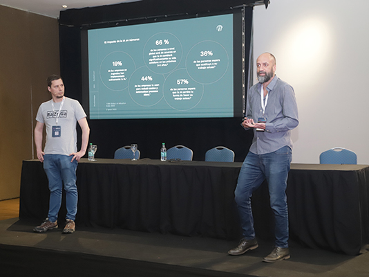 El impacto de la inteligencia artificial (IA) y la relevancia de su aplicación al mercado asegurador fue uno de los ejes abordados por dos referentes de Flux IT –Pablo Marquevichi, Head de Experience Design, y Alejandro Alessi, Head de Technology– en Expoestrategas 2023.