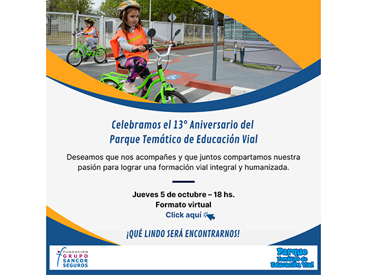El jueves 5 de octubre a las 18 horas, se realizará un acto virtual en el marco de la celebración de los trece años del Parque Temático de Educación Vial de la Fundación Grupo Sancor Seguros.