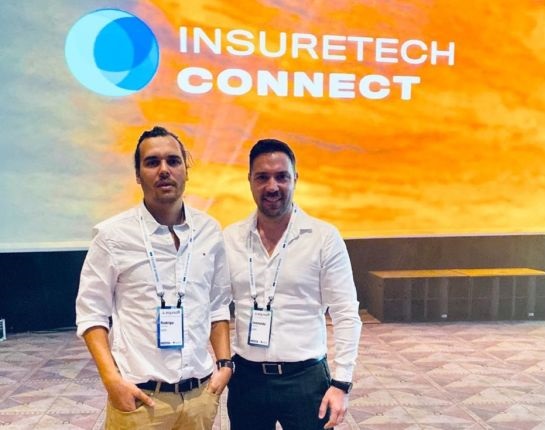En la foto, de izquierda a derecha, Rodrigo Ferreyra y Leonardo Valseche, directores de SSPV, en InsureTech Connect 2019 en Las Vegas.