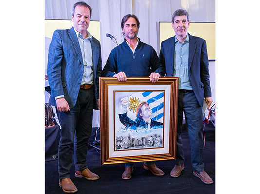 Homenaje a Luis Landriscina, junto al presidente uruguayo, funcionarios públicos y autoridades del Grupo Sancor Seguros.