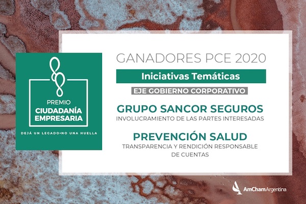 Grupo Sancor Seguros y su prepaga, Prevención Salud, fueron distinguidos por la Cámara de Comercio de Estados Unidos en la Argentina con el Premio Ciudadanía Empresaria. En su 22º edición, se reconocieron a quince compañías por su compromiso con la sustentabilidad. Las mismas habían sido previamente seleccionadas entre más de noventa pymes y grandes empresas participantes de todo el país.
