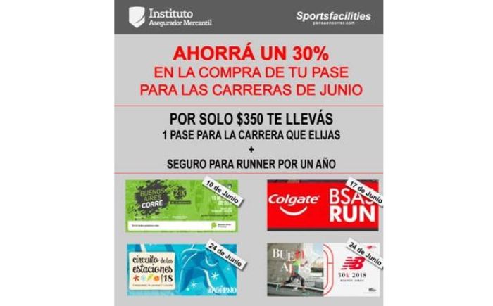 La estrategia consiste en que todo aquel que adquiera un seguro de vida para la práctica del running por un año, recibe gratis un pase para una de las 4 carreras programadas para el mes de junio. Así, por un valor inferior al costo de inscripción al certamen, se accede no sólo al mismo, sino también a una completa cobertura que incluye los riesgos de accidentes personales, incapacidad total y parcial, fallecimiento y emergencias médicas.