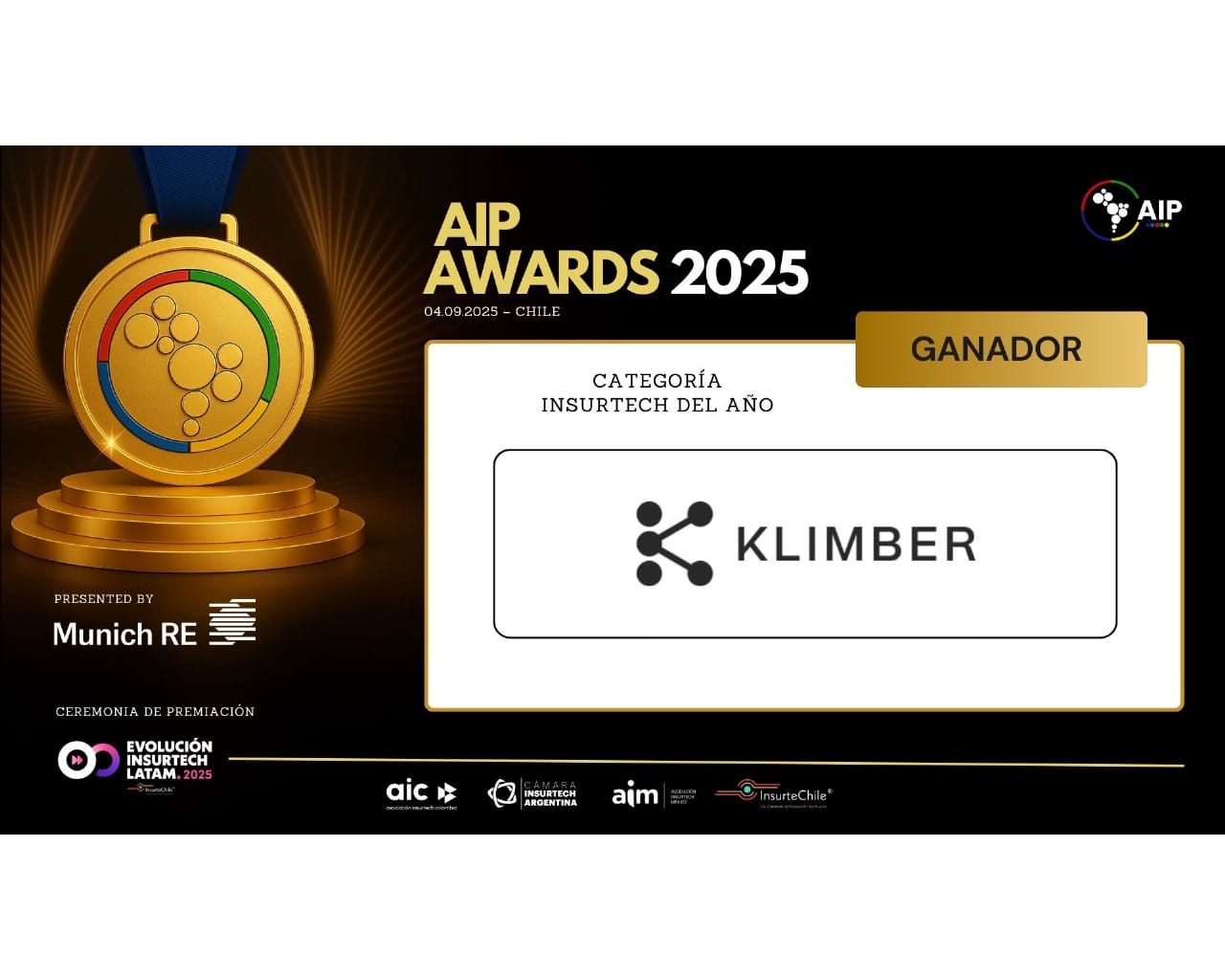 Klimber fue distinguida como Insurtech del Año en la ceremonia de los AIP Awards, celebrada en el marco de EILA 2025, uno de los foros más influyentes de la industria de seguros en la región.
