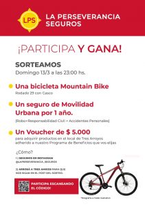 Por otro lado, en el stand se llevara adelante el sorteo de tres pares de entradas para los días sábado y domingo. Además, habrá sorteos de una bicicleta Mountain Bike rodado 29 con casco y de un Seguro de Movilidad Urbana por un año. También se sorteará un voucher por una orden de compras de 5 mil pesos en comercios adheridos al Programa de Beneficios de la compañía.