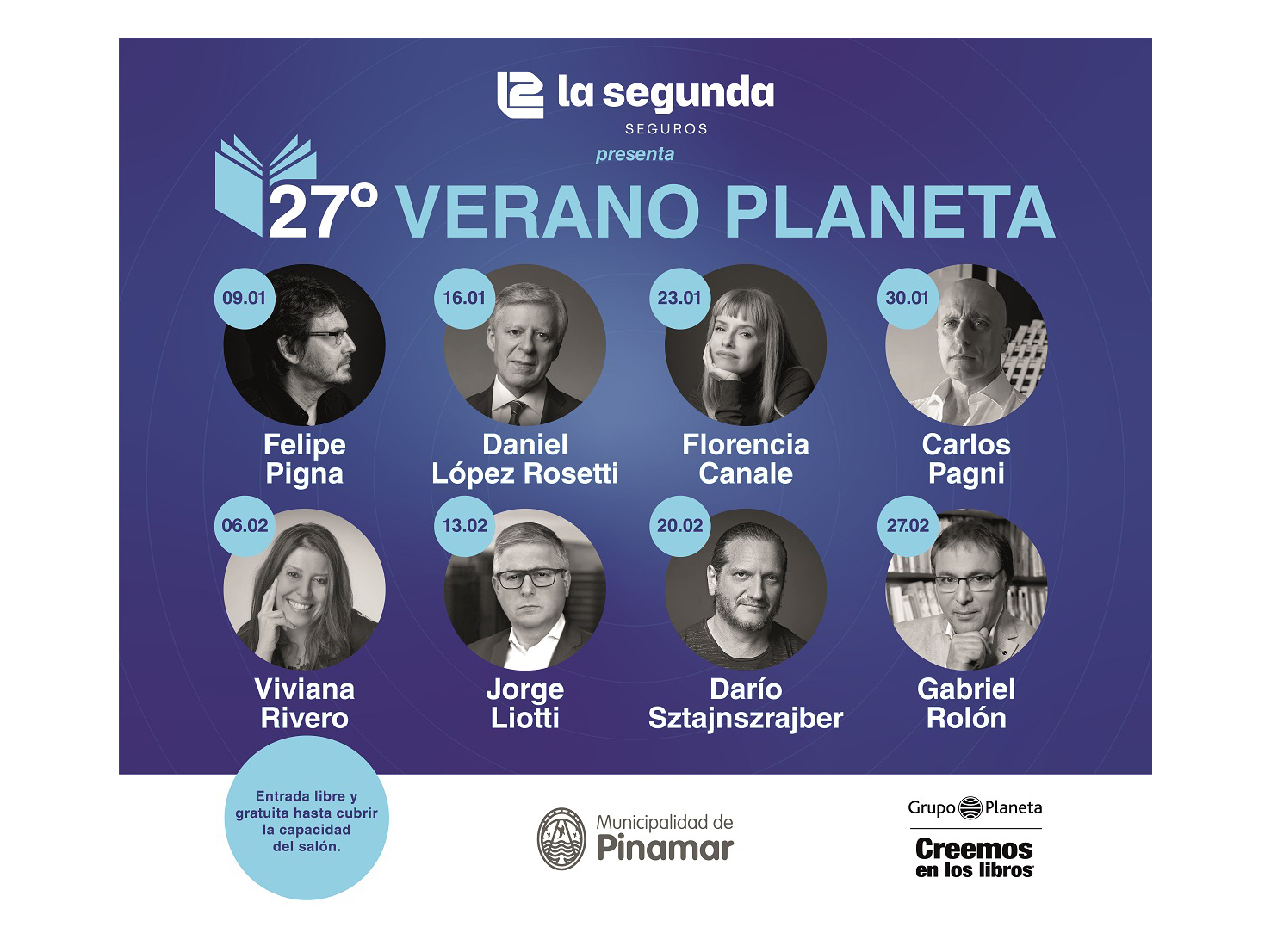 La agenda de enero se completa con la presencia de los autores Daniel López Rosetti, Florencia Canale y Carlos Pagni. Ellos presentarán sus últimos trabajos editoriales. López Rosetti llega con “La Gioconda y Leonardo”, una historia de ciencia, arte y amor. Canale presentará “El Diablo”, la vida de Bernardo de Monteagudo, “el hombre prohibido, el héroe imposible”. Y en la última charla de enero llegará el reconocido periodista Carlos Pagni con “El nudo”, una radiografía minuciosa del conurbano bonaerense.