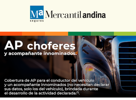 En segundo lugar, prosiguieron desde Mercantil andina, “un dato relevante de este seguro para transportistas es que se protege hasta un acompañante eventual no declarado”.