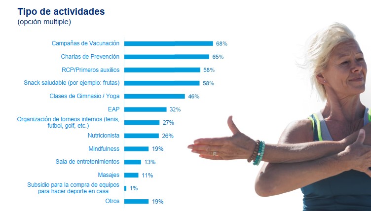 Siguiendo esta línea, el reporte destacó que un 54% otorga días de vacaciones adicionales a aquellos establecidos por ley y convenio colectivo de trabajo y un 71% otorga como beneficio alguna actividad relacionada con el bienestar.