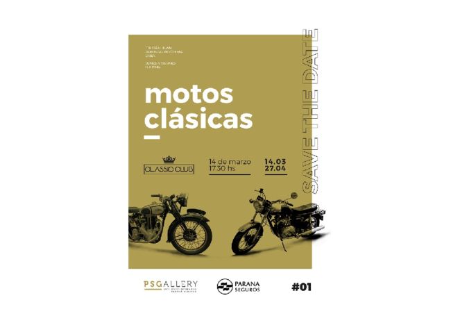 La muestra en la que el Classic Club expondrá 26 de sus motocicletas clásicas (donde se destacan ejemplares de principio de siglo y emblemas de la industria británica, estadounidense e italiana) comenzará el miércoles 14 de marzo y se extenderá hasta el 27 de abril. La misma funcionará de 11 a 17 horas en PSGallery Arte Contemporáneo, ubicada en la planta baja de Paraná Seguros, calle Tte. Gral. Juan Domingo Perón 690 de la Ciudad Autónoma de Buenos Aires.