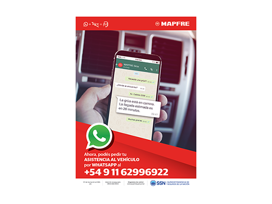 A partir de ahora, los asegurados de Mapfre Argentina podrán pedir asistencia al vehículo a través de un mensaje de WhatsApp. Para acceder a este nuevo canal sólo será necesario agendar el siguiente número: (54) 9 11 6299-6922.