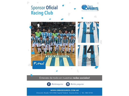 Orbis Seguros se suma como sponsor oficial de San Lorenzo y de Racing Club. La compañía tendrá presencia en las camisetas de los equipos de básquet y de futsal, en cada estadio, en cada club y, además, lanzará productos específicos para los socios de ambos clubes.