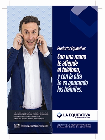 La Equitativa del Plata creó y presentó la figura del Productor Equitativo, que “es una persona muy equilibrada y equitativa que media entre la empresa y sus clientes, que asesora y resuelve conflictos, que sabe hablar, pero que también sabe escuchar, que está disponible a toda hora y que siempre actúa en su justa medida. Que es bueno para la compañía y bueno para el cliente”.