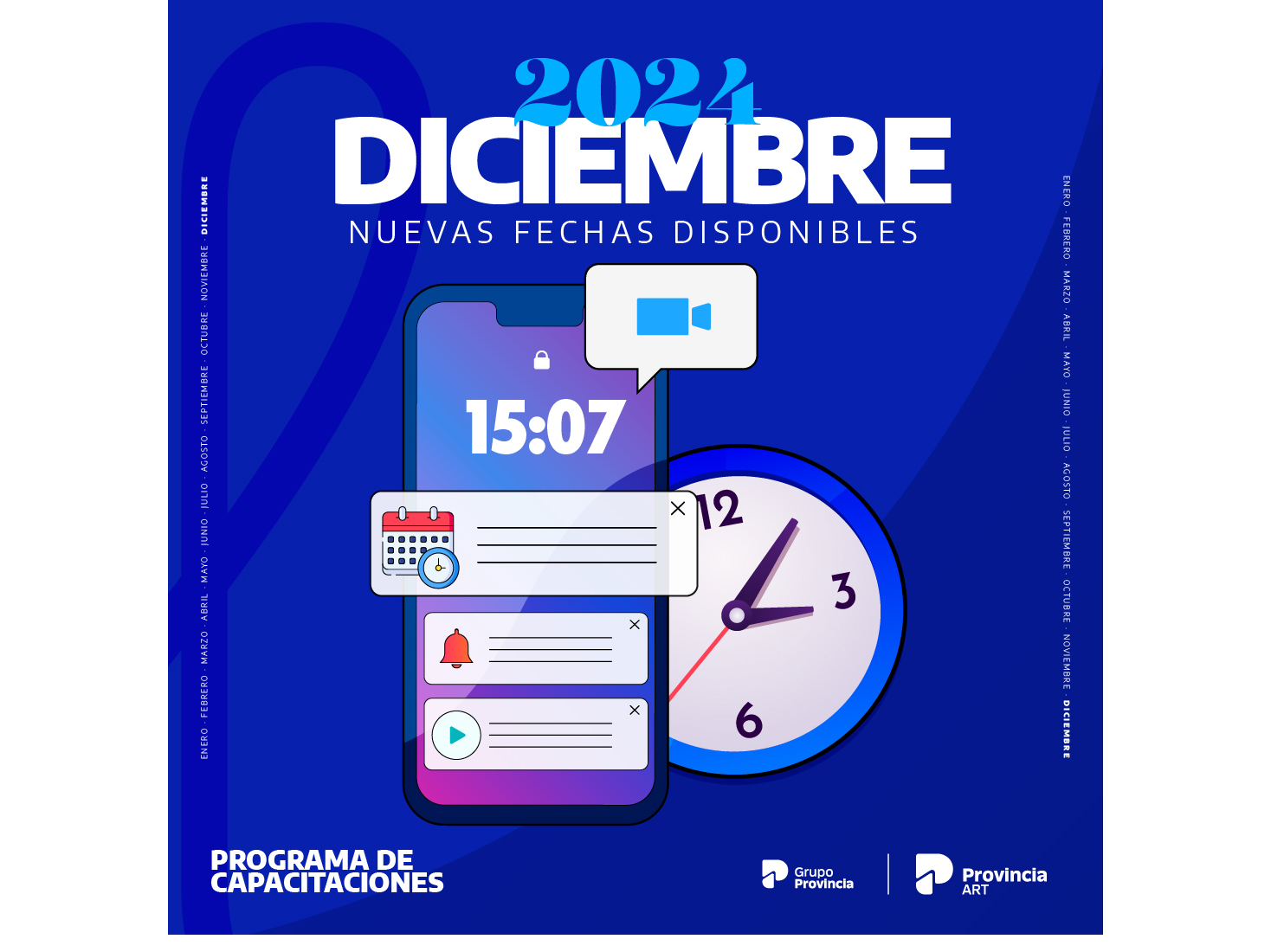 Provincia ART, la aseguradora de riesgos del trabajo del Grupo Provincia, confirmó su cronograma de capacitaciones gratuitas para diciembre. En dicho mes, la compañía hará foco en las fiestas, las vacaciones y las altas temperaturas.