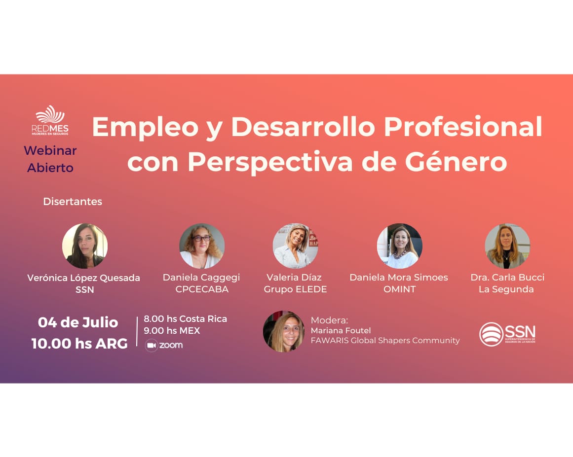 La Red de Mujeres En Seguros (RedMES) invita a participar del próximo webinar abierto y gratuito sobre «Empleo y desarrollo profesional con perspectiva de género».