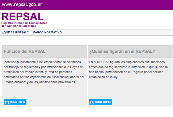 En el REPSAL se incluyen y publican determinas sanciones firmes aplicadas a los empleadores por el MTESS, la Administración Federal de Ingresos Públicos (AFIP), las autoridades provinciales y de la Ciudad Autónoma de Buenos Aires (CABA), el Registro Nacional de Trabajadores y Empleadores Agrarios (RENATEA) y la Superintendencia de Riesgos del Trabajo (SRT).