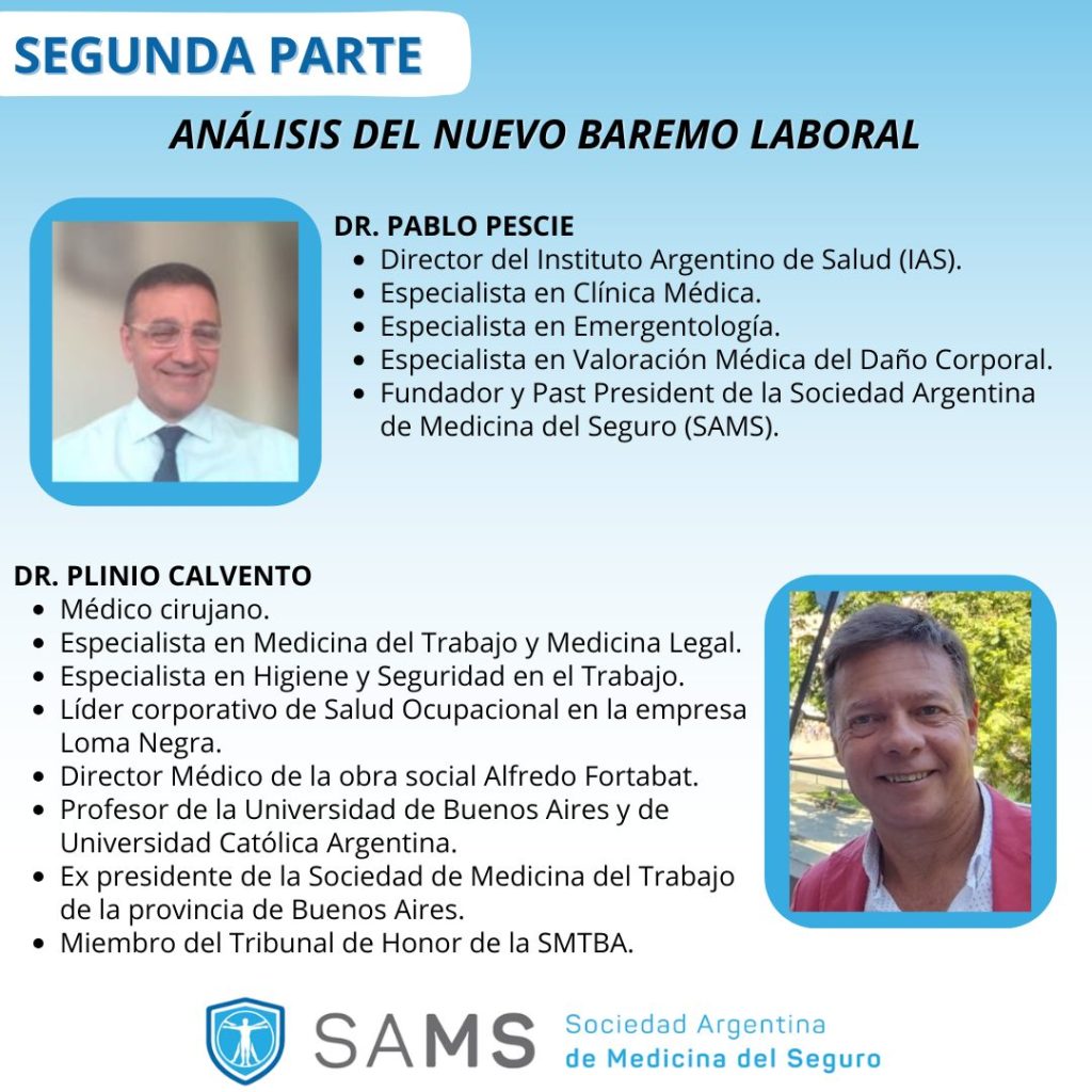 La próxima Reunión Científica Anual de la Sociedad Argentina de la Medicina del Seguro (SAMS) tendrá lugar el jueves 9 de octubre de 18 a 20 horas. Bajo el título “Nuevas perspectivas en la evaluación de incapacidades laborales: un análisis multifacético del nuevo baremo”, el encuentro se llevará adelante en Av. Santa Fe 1171, Ciudad de Buenos Aires y virtualmente a través de Zoom.