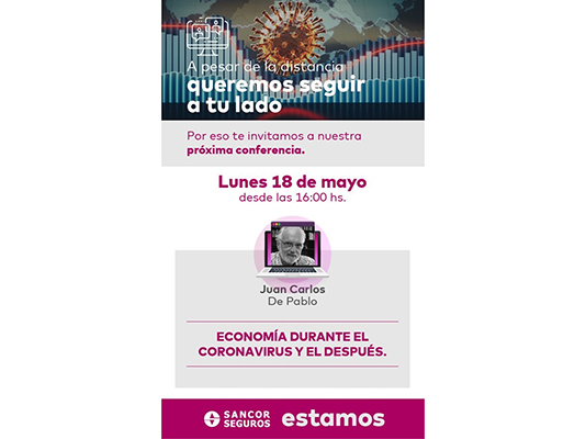 El webinario de Sancor Seguros del próximo lunes 18 de mayo estará a cargo de Juan Carlos de Pablo. El economista se desempeña como consultor y director del newsletter “Contexto”. También es columnista en La Nación y profesor universitario.