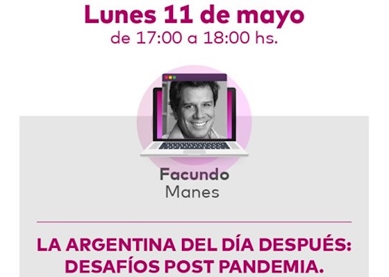 La charla titulada “La Argentina del día después: desafíos post-pandemia” se llevará a cabo el próximo lunes 11 de mayo.