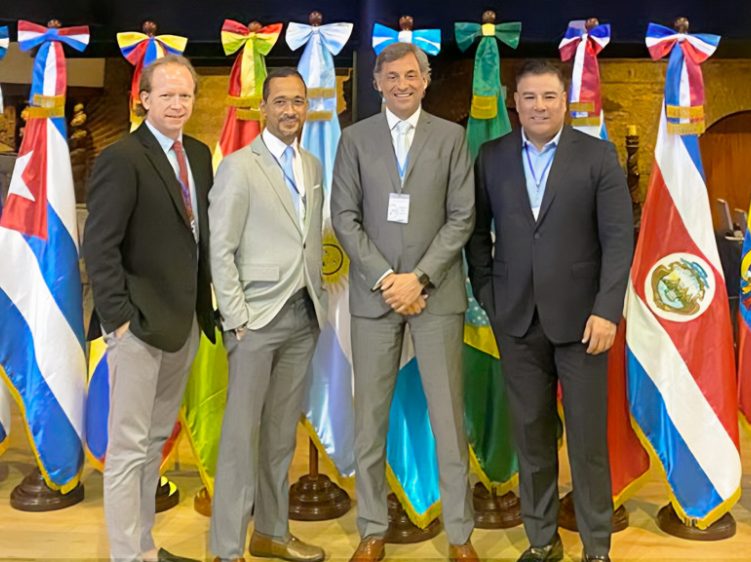 De izquierda a derecha, Ryan Workman, director of International Policy & Affairs National Association of Insurance Commissioners (Estados Unidos); Alexander Adams, comisionado Puerto Rico; Guillermo Plate, superintendente de Seguros de la Nación (Argentina); y Ricardo Lara, comisionado de California.